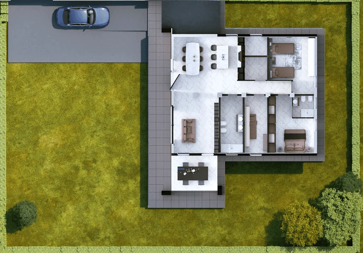 GammaVilla's exterior design combines aesthetics and functionality, creating harmonious spaces in tune with the surrounding environment.